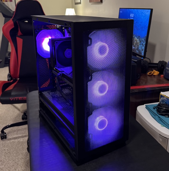 It's hard to capture the RGB LED lights well since they are cycling through colors fairly quickly, but the computer has a very striking look to it!