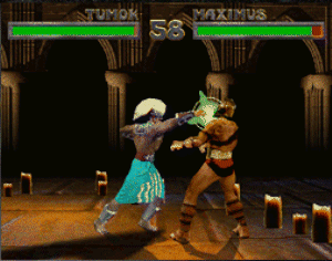 Besides that, MK4 is going to be a 3-D game, like Tekken, Virtua Fighter, Toshinden, etc., and will use Midway's new "Digital Skin" texture mapping technique, which basically lets the fighters look like the have real skin. No game other than Midway's War Gods has ever used this technique, but judging from War Gods, it is very effective.